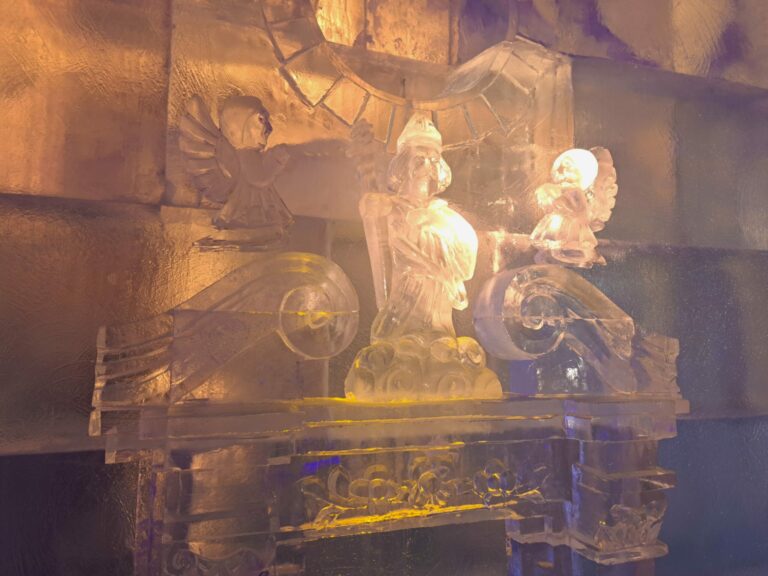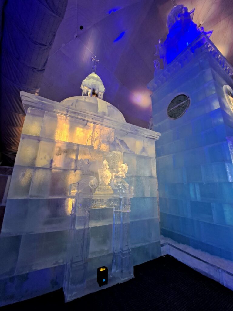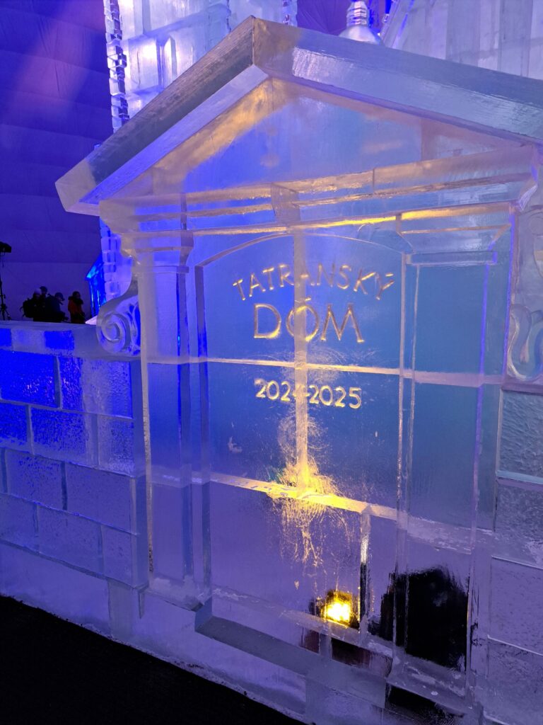 Detail na krakovskom Kostole sv. Vojtecha vytvorenom z ľadu v rámci Tatranského ľadového dómu na Hrebienku v súvislosti s budúcoročným 30. výročím návštevy Jána Pavla II. vo Vysokých Tatrách. Vysoké Tatry, 14. november 2024. Foto: SITA/Mária Frisová.