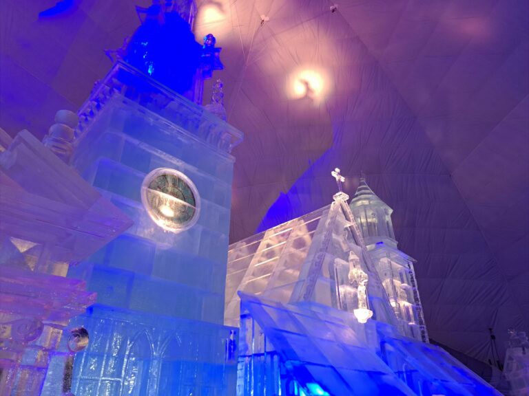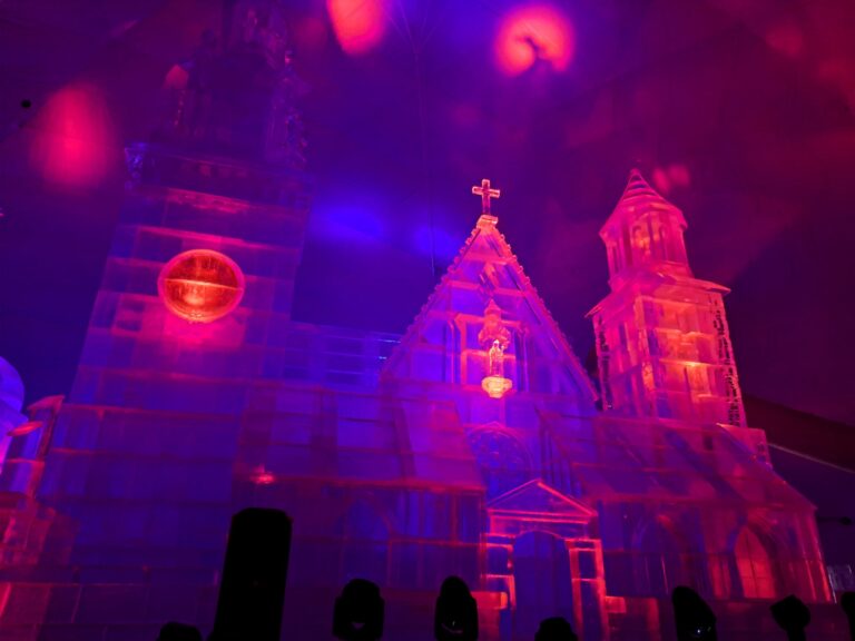 Krakovský Kostol sv. Vojtecha vytvorený z ľadu v rámci Tatranského ľadového dómu na Hrebienku v súvislosti s budúcoročným 30. výročím návštevy Jána Pavla II. vo Vysokých Tatrách. Vysoké Tatry, 14. november 2024. Foto: SITA/Mária Frisová.