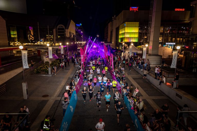 Štart pretekov pri novej budove Slovenského národného divadla počas 14. ročníka bežeckého podujatia Telekom Night Run, ktorý sa uskutočnil 3. septembra v Bratislave. Foto: SITA/Be Cool