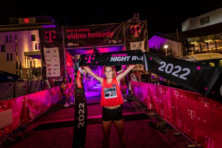 Ženská víťazka Žofia Naňová počas 14. ročníka bežeckého podujatia Telekom Night Run, ktorý sa uskutočnil 3. septembra v Bratislave. Foto: SITA/Be Cool