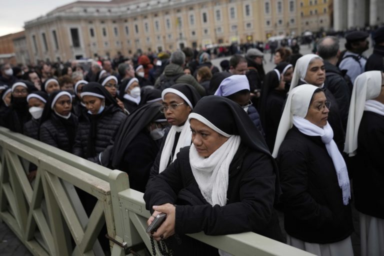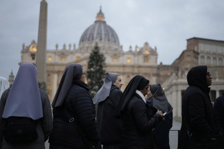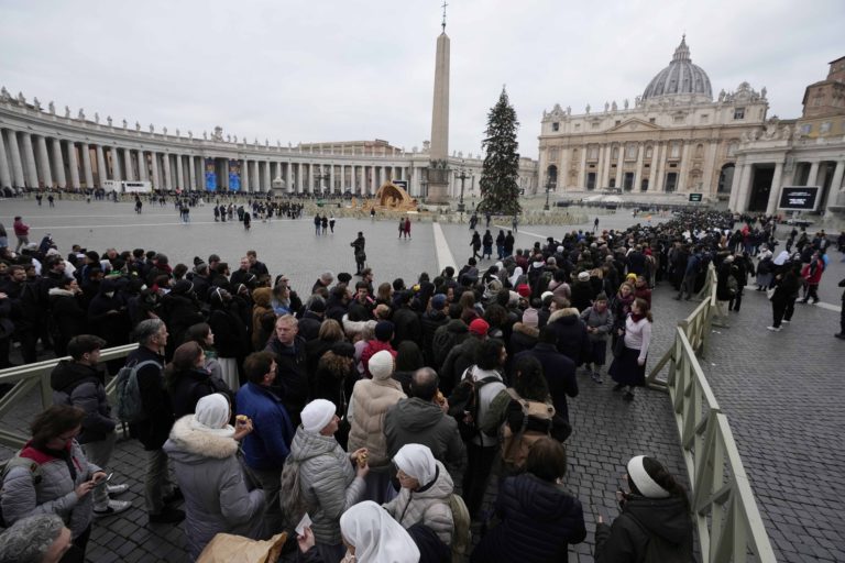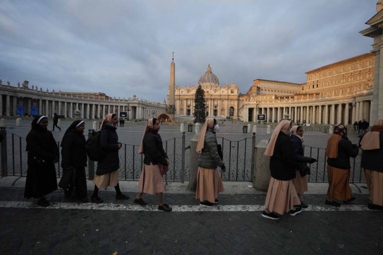 Návštevníci pred Bazilikou svätého Petra vo Vatikáne, nedeľa 1. januára 2023. Foto: SITA/AP