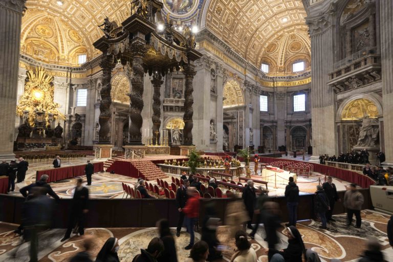 Námestie sv. Petra vo Vatikáne pripravujú na príchod návštevníkov, ktorí prídu vzdať hold zosnulému pápežovi Benediktovi XVI. Foto: SITA/AP