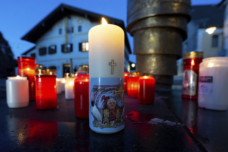 Sviečky pred rodným domom emeritného pápeža Benedikta XVI. v Marktli v Nemecku. Foto: SITA/AP