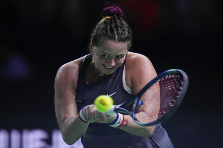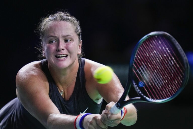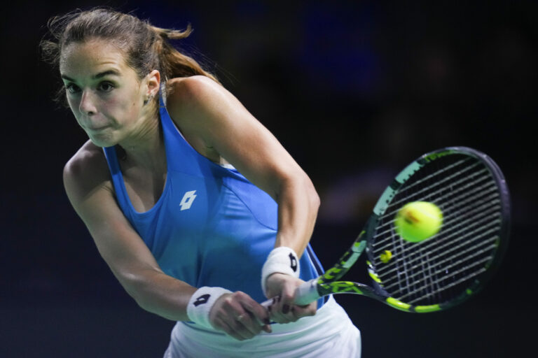 Slovenská tenistka Rebecca Šramková počas druhej dvojhry finále Pohára Billie Jean Kingovej, v ktorej podľahla Talianke Jasmine Paoliniovej 2:6, 1:6. Málaga, 20. november 2024. Foto: archívne, SITA/AP.