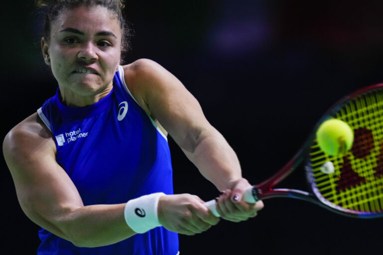 Talianska tenistka Jasmine Paoliniová počas druhej dvojhry vo finále Pohára Billie Jean Kingovej, v ktorej zdolala Slovenku Rebeccu Šramkovú 6:2, 6:1. Málaga, 20. november 2024. Foto: SITA/AP.