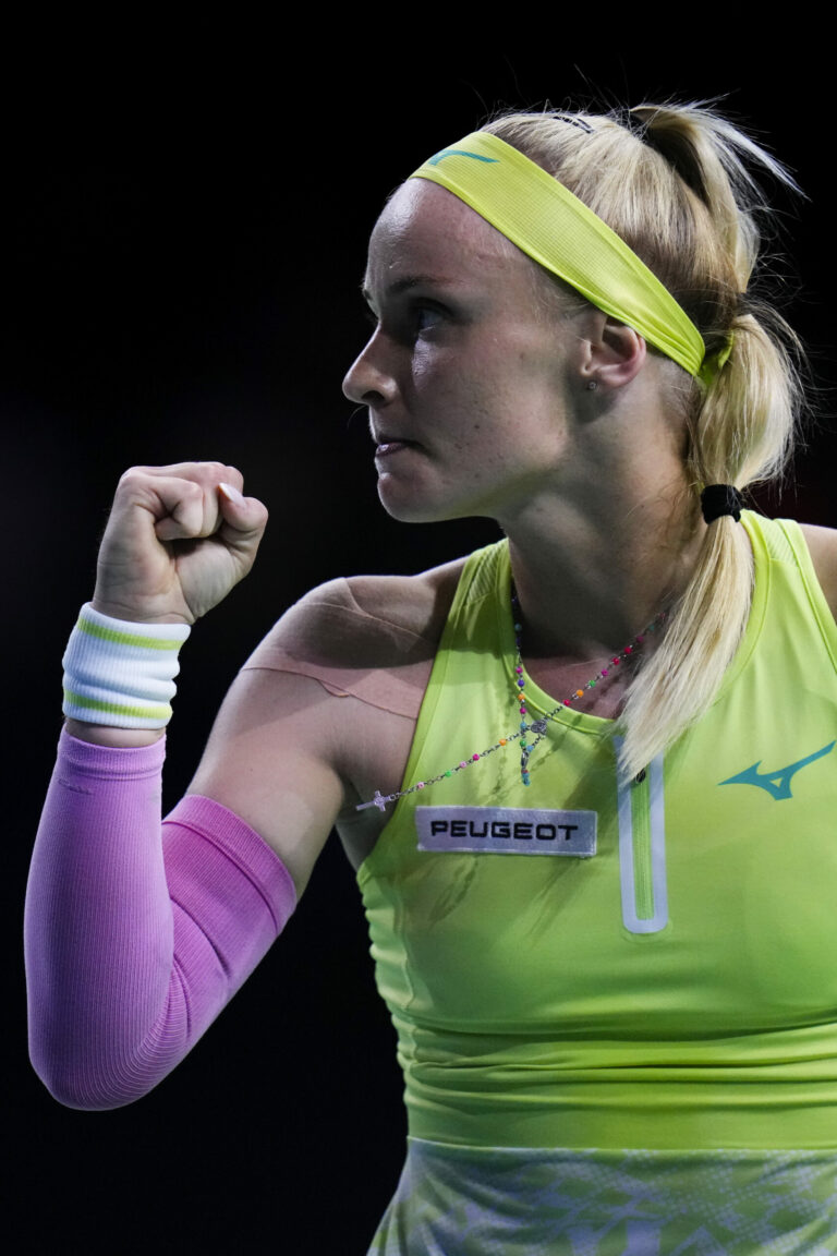 Slovenská tenistka Rebecca Šramková počas druhej dvojhry finále Pohára Billie Jean Kingovej, v ktorej podľahla Talianke Jasmine Paoliniovej 2:6, 1:6. Málaga, 20. november 2024. Foto: SITA/AP.