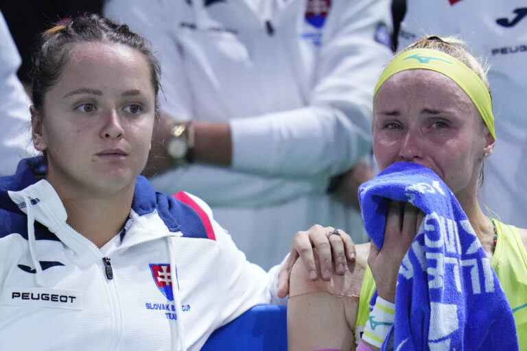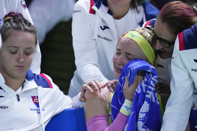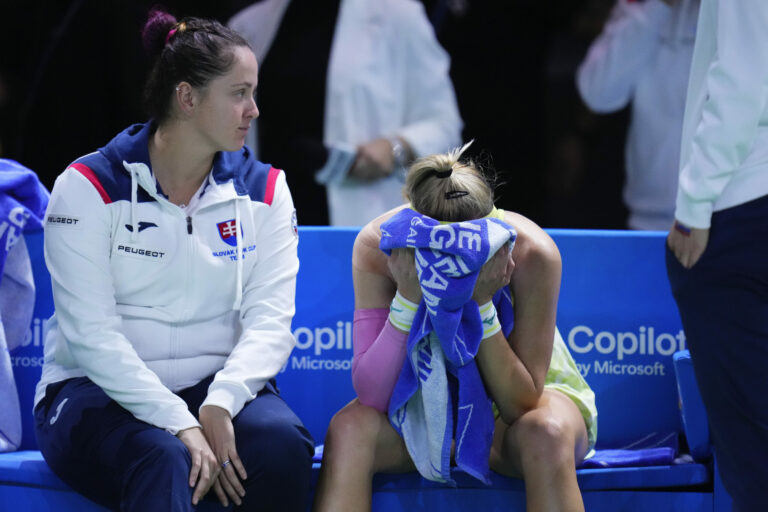 Slovenské tenistky po prehre s Taliankami vo finále Pohára Billie Jean Kingovej. Málaga, 20. november 2024. Foto: SITA/AP.