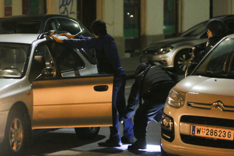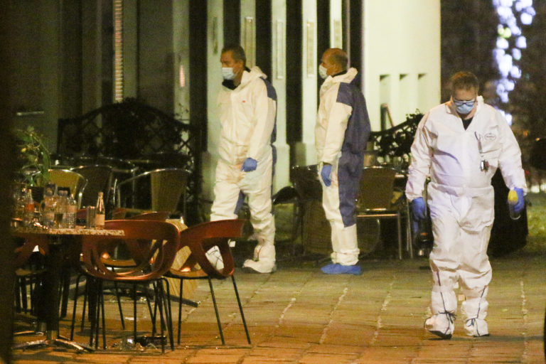 V pondelok 2. novembra sa v centre Viedne vo večerných hodinách odohral teroristický útok, pri ktorom zahynulo niekoľko civilistov a ďalší skončili s rôznymi poraneniami. Na mieste zasahovali desiatky policajtov, ktorý sa útočníkov snažili zneškodniť. Miesto činu prehliadli aj vyšetrovatelia. Foto: SITA/AP