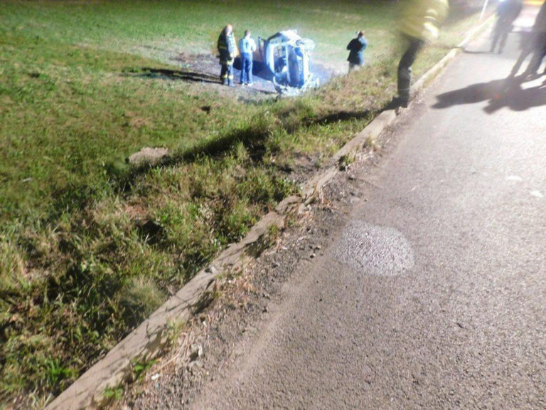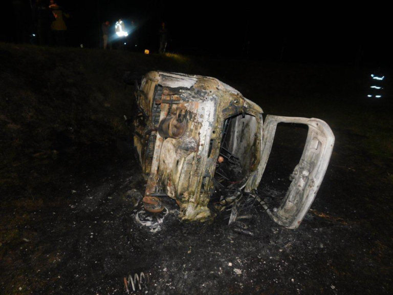 Osemnásťročný spolujazdec zhorel v aute po nehode, ktorá sa stala dnes po polnoci na Obchodnej ulici pri Tescu vo Zvolene. Rovnako starý vodič Renaultu Clio z Banskej Bystrice neprispôsobil v zákrute rýchlosť a zišiel z cesty. Auto sa prevrátilo, zostalo na pravom boku a následne začalo horieť. Vo vnútri zostal zakliesnený vážne zranený 18-ročný spolujazdec zo Sliača, ktorý sedel na sedadle spolujazdca. V aute zhorel. Vodičovi alkohol nezistili. Pri nehode sa ľahko zranil, s ľahkými zraneniami vyviazla aj 16-ročná spolujazdkyňa. Zvolen, 23. august 2017. Foto: SITA/KR PZ Banská Bystrica