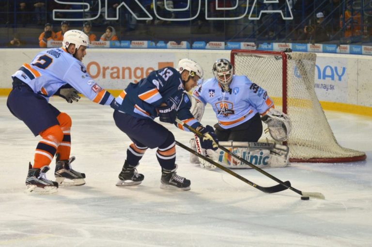 Zľava: Martin Dudáš z tímu Šatan, Michal Krištof z tímu Bondra a Jason Bacashihua z tímu Šatan počas hokejového Zápasu hviezd Tipsport ligy. Poprad, 29. január 2017. Foto: SITA/Radoslav Maťaš