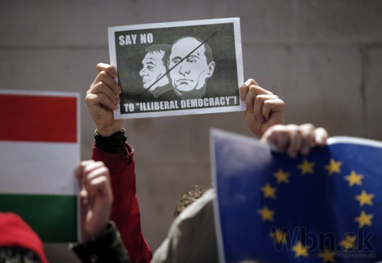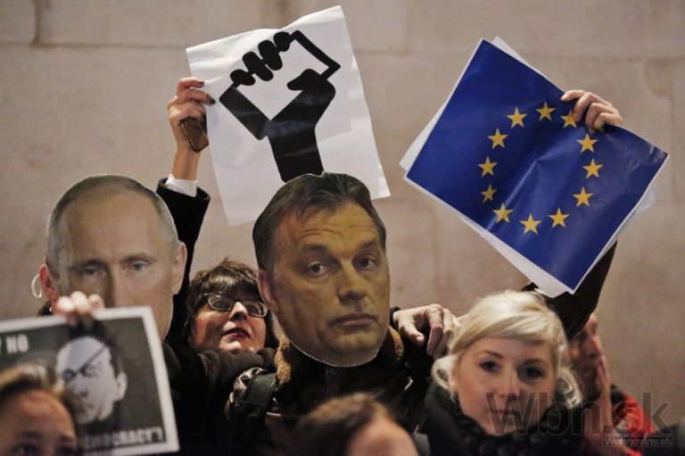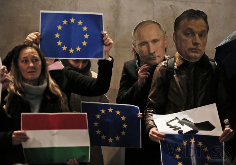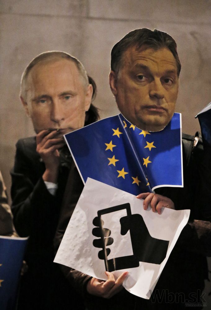 Viac ako desaťtisíc ľudí sa v pondelok večer zhromaždilo pred budovou maďarského parlamentu, kam prišli vyjadriť svoju nespokojnosť s s vládou premiéra Viktora Orbána. Prítomní skandovali protivládne heslá a žiadali odvolanie šéfky daňového úradu, ktorá sa pre podozrenia z korupcie ocitla na americkom zozname neželaných osôb. Účastníci podujatia vyzývali Orbánov kabinet na prijatie zodpovednosti. Foto: SITA/AP