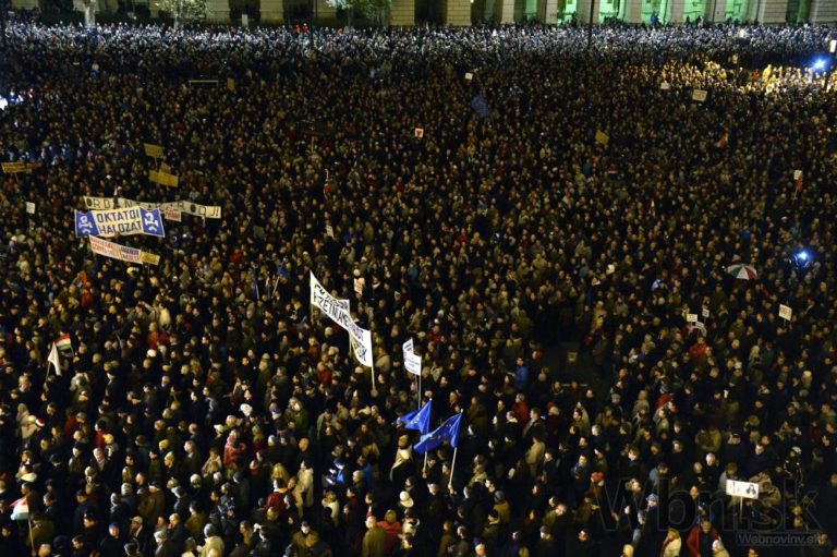 Viac ako desaťtisíc ľudí sa v pondelok večer zhromaždilo pred budovou maďarského parlamentu, kam prišli vyjadriť svoju nespokojnosť s s vládou premiéra Viktora Orbána. Prítomní skandovali protivládne heslá a žiadali odvolanie šéfky daňového úradu, ktorá sa pre podozrenia z korupcie ocitla na americkom zozname neželaných osôb. Účastníci podujatia vyzývali Orbánov kabinet na prijatie zodpovednosti.