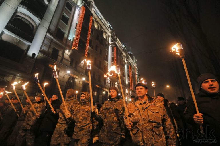 Ukrajinskí nacionalisti v uliciach Kyjeva. Foto: SITA/AP