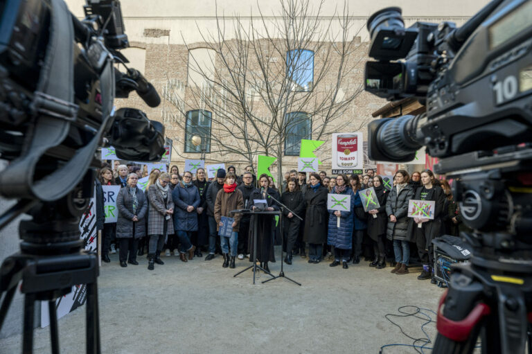 Zamestnanci SNG počas tlačovej besedy nespokojných zamestnancov Slovenskej národnej galérie (SNG) na tému: Hromadný odchod zamestnancov. Bratrislava, 27. január 2025. Foto: SITA/Milan Illík
