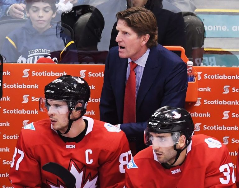 Kanadský tréner Mike Babcock počas prvého finálového zápasu Svetového pohára. Toronto, 27. september 2016. Foto: Frank Gunn/The Canadian Press via AP