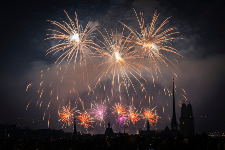 Ohňostroj na nočnej oblohe nad Zürichom počas osláv Silvestra. Švajčiarsko, 1. januára 2026. Foto: Andreas Becker/Keystone via AP