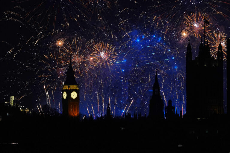 Ohňostroj v centre Londýna na oslavu Nového roka. Anglicko, 1. januára 2026. Foto: AP Photo/Alberto Pezzali