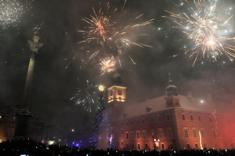 Ohňostroj nad Kráľovským hradom počas osláv Nového roka krátko po polnoci vo Varšave. Poľsko, 1. januára 2026. Foto: AP Photo/Czarek Sokolowski