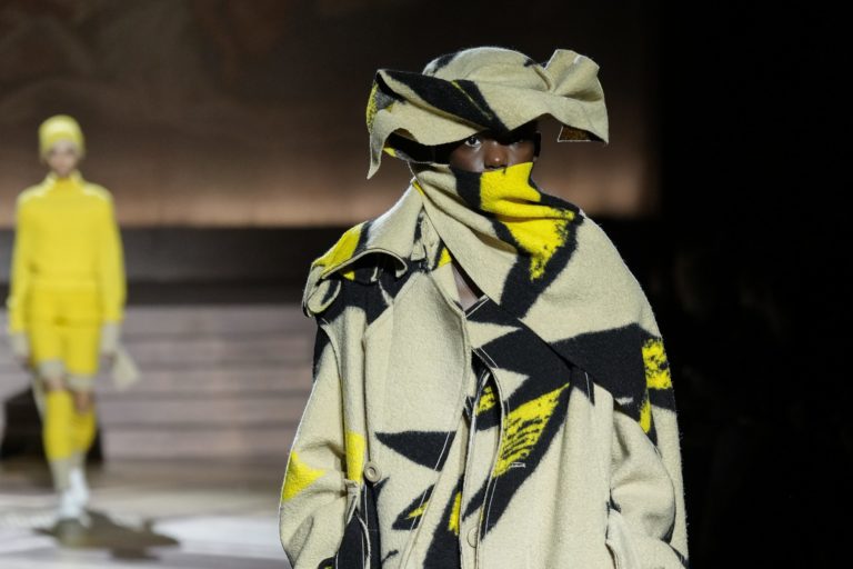 Modelka predvádza kúsok z kolekcie Issey Miyake Fall/Winter 2024-2025 ready-to-wear. Foto: Photo by Scott A Garfitt/Invision/AP