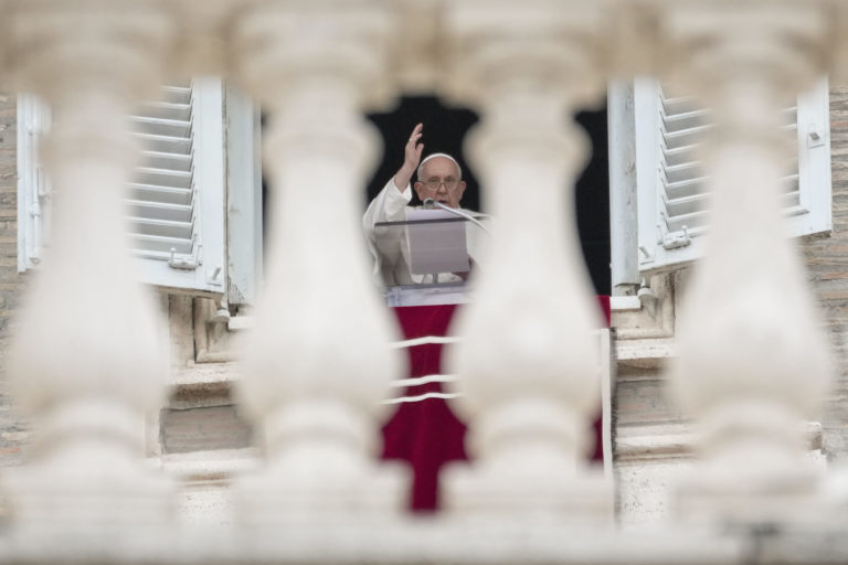 Pápež František dáva požehnanie ľuďom pri príležitosti Sviatku všetkých svätých na Námestí sv. Petra vo Vatikáne. Foto: SITA/AP.