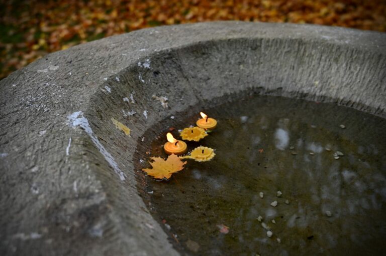 Obradné miesto so sviečkami z včelieho vosku na prírodnom cintoríne Záhrada spomienok vo Zvolene krátko pred sviatkom Všetkých svätých. Zvolen, 31. október 2024. Foto: SITA/Jakub Julény.