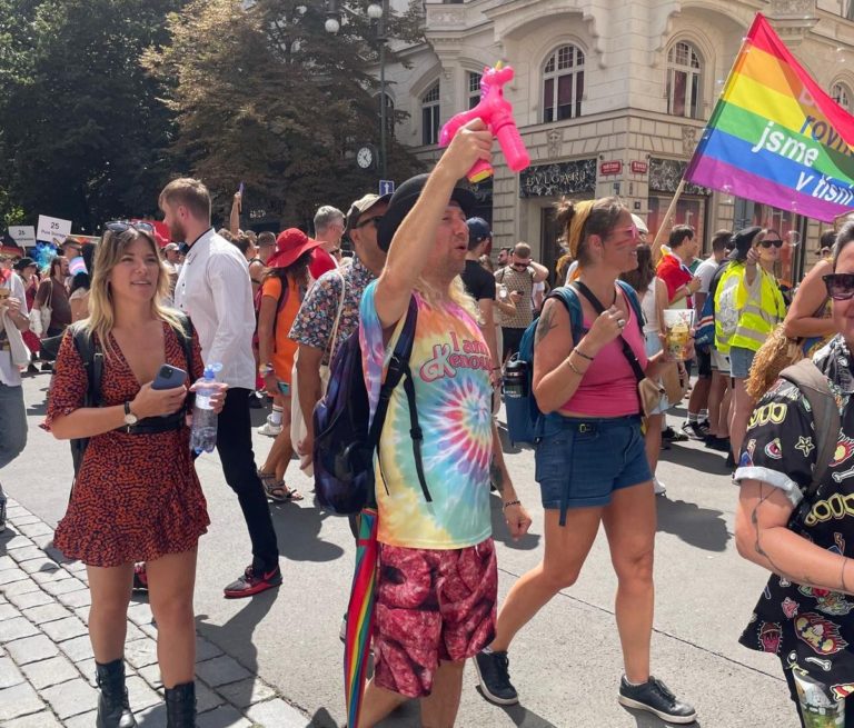 V Prahe odštartoval Prague Pride. Podporovatelia sexuálnych menšín vyšli na ulíc s dúhovými predmetmi. Foto: SITA