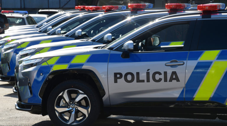 Nové vozidlá kategórie SUV Toyota RAV4 Plug - In Hybrid, 2,5 Plug in hybrid v policajnej verzii s novými EČV, ktoré Ministerstvo vnútra SR prerozdelilo na krajské a okresné riaditeľstvá Policajného zboru v rámci krajov Trnava, Nitra, Banská Bystrica, Žilina, Trenčín a Košice. Vozidlá sú zakúpené zo zdrojov Plánu obnovy a odolnosti SR. Bratislava, 11. august 2023. Foto: SITA/Ministerstvo vnútra SR/Vladimír Benko