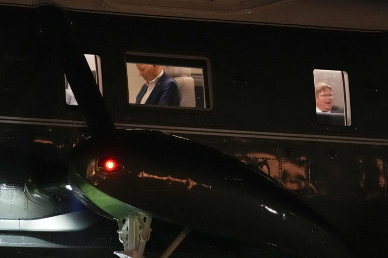 Americký prezident Joe Biden na palube helikoptéry Marine One počas pristávania v Bielom dome. Foto: SITA/AP.
