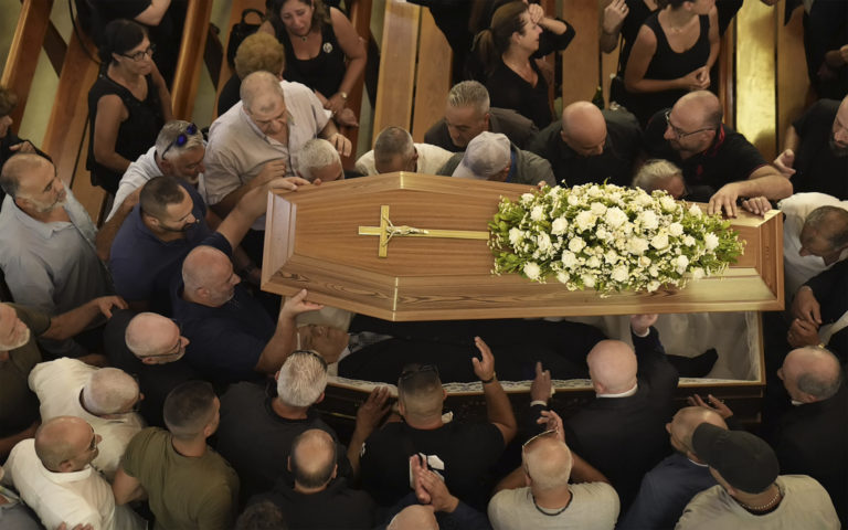 Pohreb Fadiho Bejaniho, ktorý bol zabitý počas stretu členov hnutia Hizballáh a armády na horskej ceste blízko Bejrútu Foto: SITA/AP.