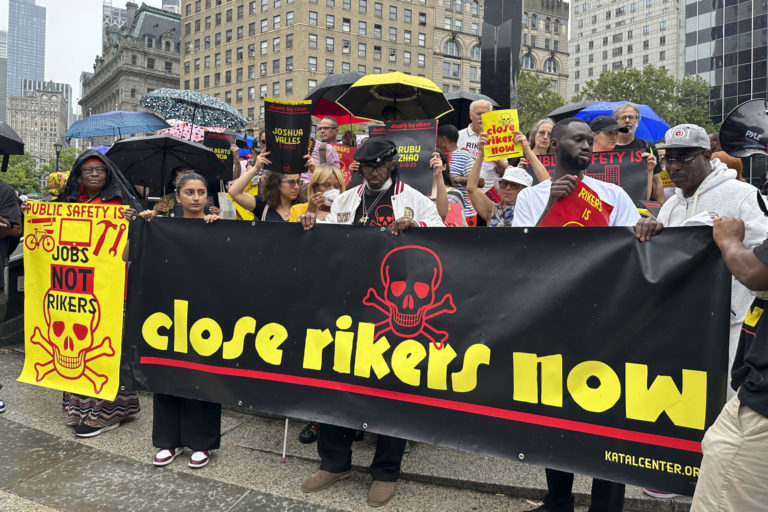 Demonštranti žiadajú uzatvorenie problémového väzenia väznice Rikers Island v New Yorku. Foto: SITA/AP.