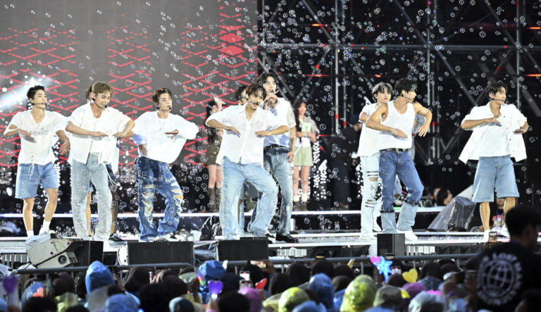 K-popová skupina The Boyz počas vystúpenia na záverečnom ceremoniálu na Svetovom zjazde skautov v juhokórejskom Soule. Foto: Korea Pool via AP.