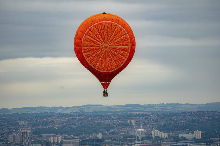 Teplovzdušný balón nad severným Somersetom počas každoročného festivalu lietania teplovzdušným balónom v Anglicku. Bristol, 11. august 2024. Foto: Ben Birchall/PA via AP