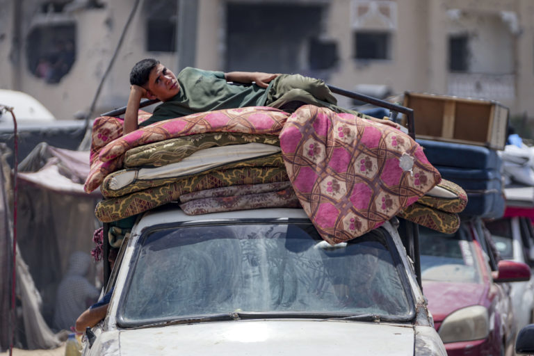 Palestínčania utekajúci z mesta Hamad v Pásme Gazy pred izraelskou ofenzívou. 11. august 2024. Foto: SITA/AP