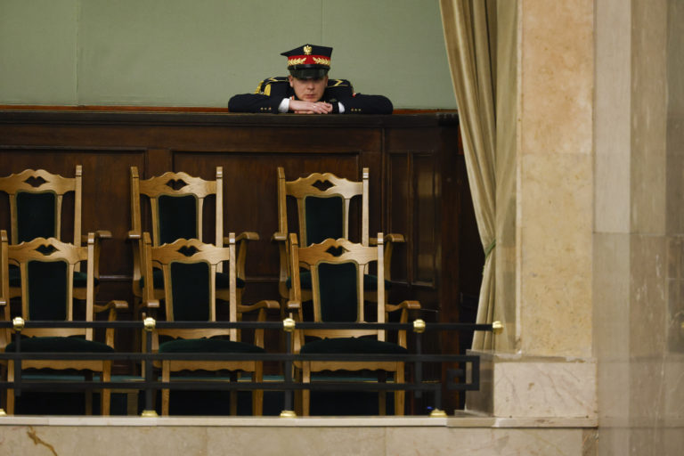 Parlamentná stráž počas prejavu novozvoleného poľského premiéra Donalda Tuska. Foto: SITA/AP.