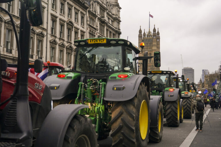 Farmári počas protestu proti plánovaným zmenám daňových pravidiel v Londýne, v stredu 11. decembra 2024. Foto: SITA/AP