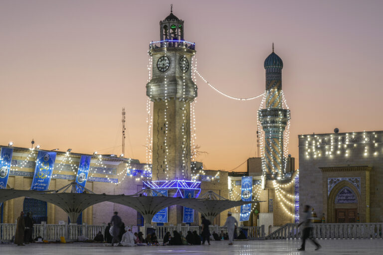 Moslimovia sa zhromažďujú na jedlo Iftar počas prvého dňa ramadánu v mešite Sheikh Abdul Qadir Gilani v Bagdade v Iraku. Moslimovia na celom svete si pripomínajú Ramadán – mesiac pôstu. Foto: SITA/AP