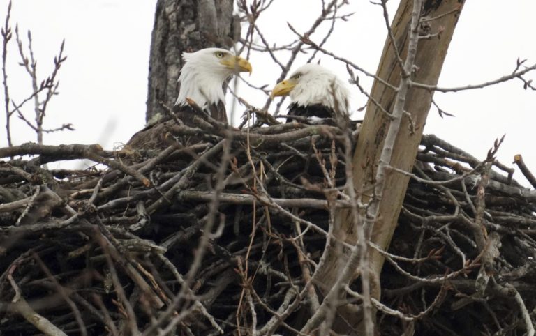 Pár orla bielohlavého vo svojom hniezde. Foto: Ben Garver/The Berkshire Eagle via AP