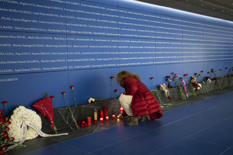Modliaca sa žena pri pamätníku obetí bombového útoku na vlak, ktorý sa stal na železničnej stanici Atocha v Madride v roku 2004. Foto: SITA/AP