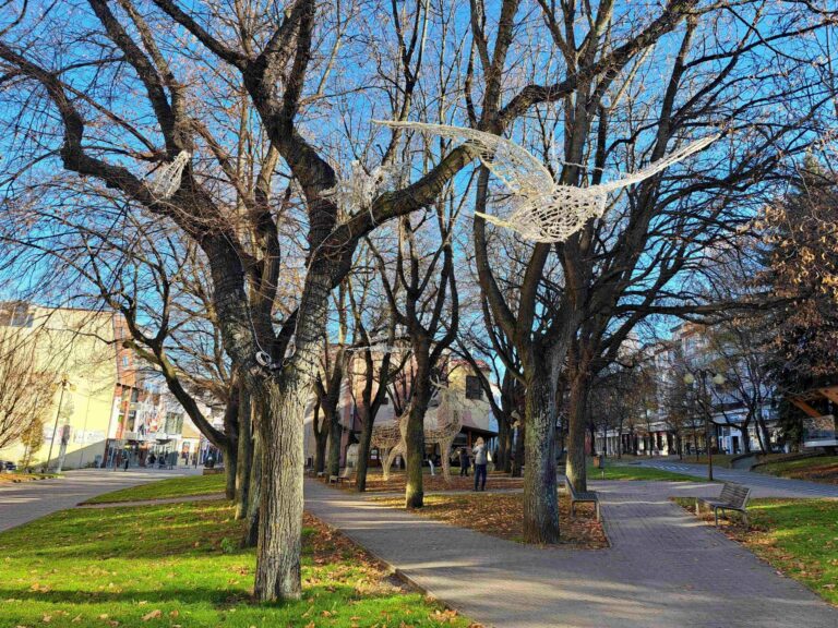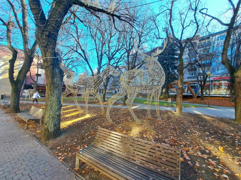Inštalácia vianočnej výzdoby v centre Popradu, ktorá pozostáva z viac ako 50 prvkov a patrí medzi najkrajšie na Slovensku. Poprad, 11. november 2024. Foto: SITA/Mária Frisová