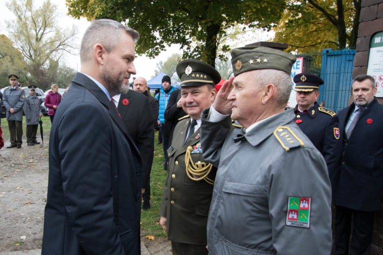 Zľava: Predseda Národnej rady SR Peter Pellegrini pred začiatkom pietneho aktu pri príležitosti Medzinárodného dňa vojnových veteránov na vojenskom cintoríne v Petržalke - Kopčanoch. Bratislava, 11. november 2023. Foto: SITA/Ľudovít Vaniher