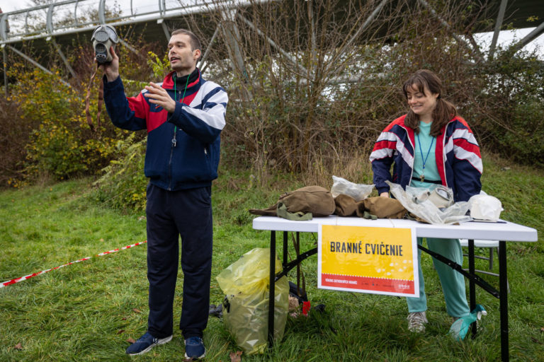 Ukážka branného cvičenia počas Víkendu zatvorených hraníc pri Cyklomoste slobody v bratislavskej mestskej časti Devínska Nová Ves. Bratislava, 11. november 2023. Foto: SITA/Jana Birošová.