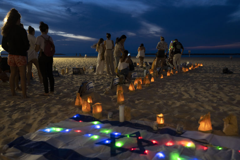 Priatelia obetí zabitých počas útoku Hamasu si uctili ich pamiatkuna pláži v izraelskom Tel Avive. Foto: SITA/AP