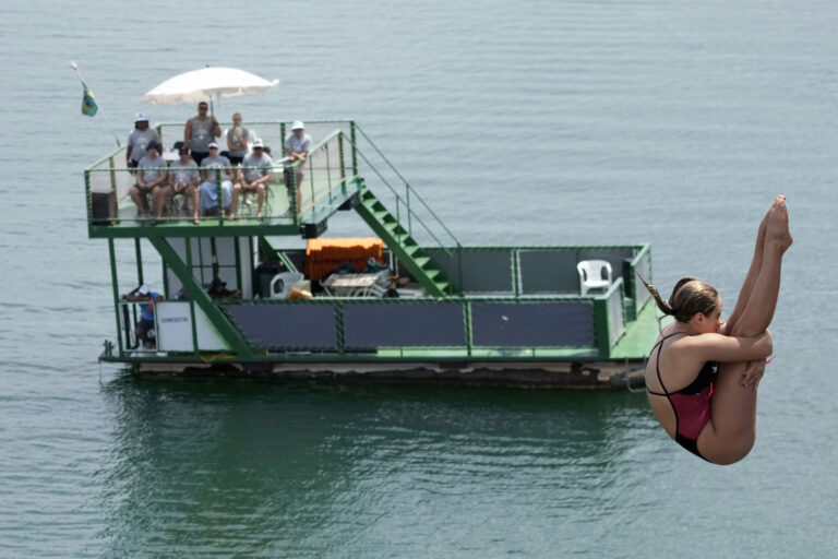 Kanaďanka Fiona Keilly počas súťaže v skokoch do vody na juniorskom svetovom šampionáte v hlavnom meste Brazílie. Brazília, 11. október 2024. Foto: SITA/AP