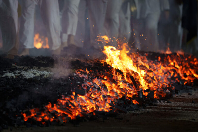 Ľudia chodia bosí po horiacich uhlíkoch počas Festivalu deviatich cisárskych bohov v Malajzii. Kuala Lumpur, 11. október 2024. Foto: SITA/AP