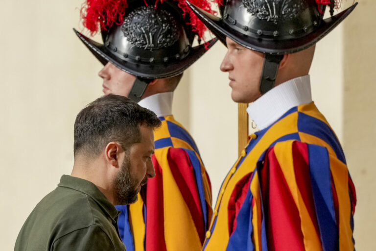 Ukrajinský prezident Volodymyr Zelenskyj prichádza na súkromné stretnutie s pápežom Františkom. Vatikán, 11. október 2024. Foto: SITA/AP