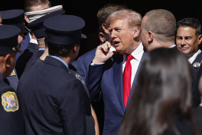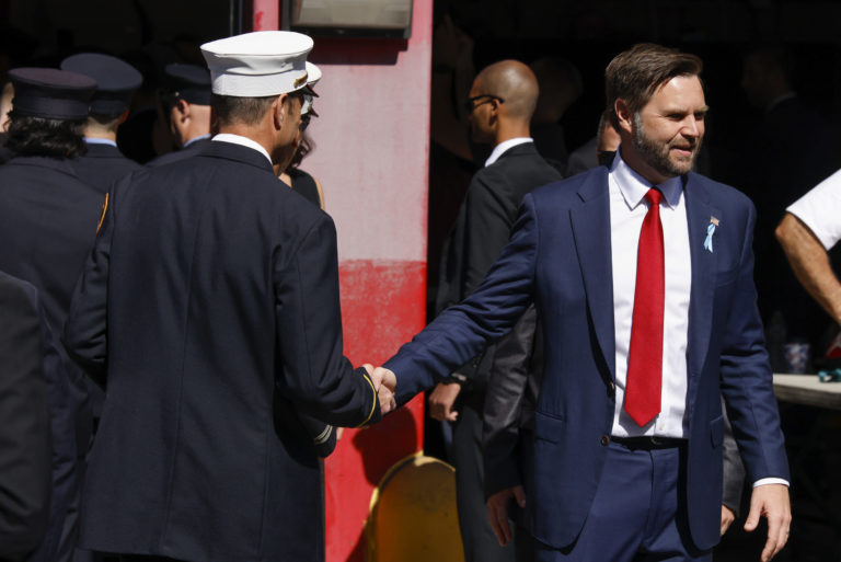 Republikánsky kandidát na viceprezidenta JD Vance, R-Ohio si podáva ruku s hasičmi. Foto: SITA/AP