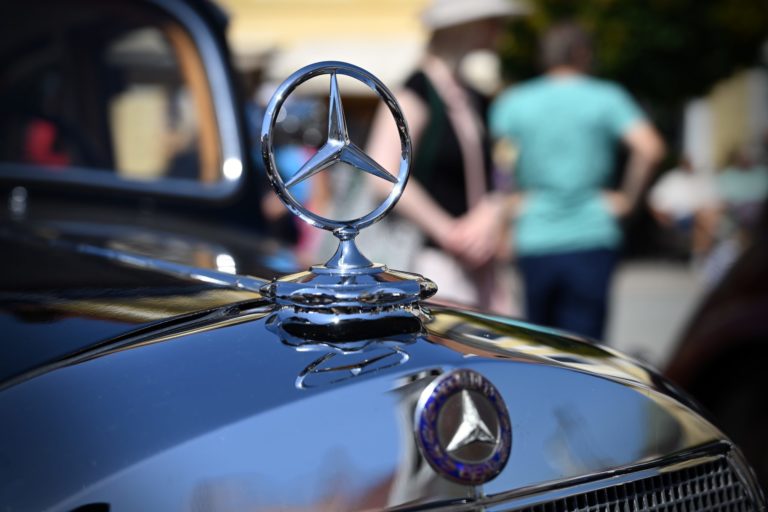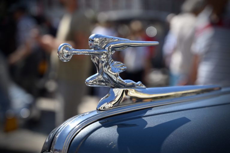 Detail historického vozidla počas 9. ročníka tradičnej prehliadky historických vozidiel a motoriek The Grand Retro Show 2023 na Námestí SNP v Banskej Bystrici. Foto: SITA/Jakub Julény.