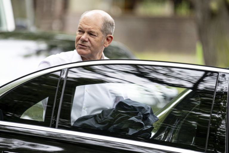 Nemecký kancelár Olaf Scholz v Berlíne nastupuje do svojho auta. Foto: Fabian Sommer/dpa via AP.