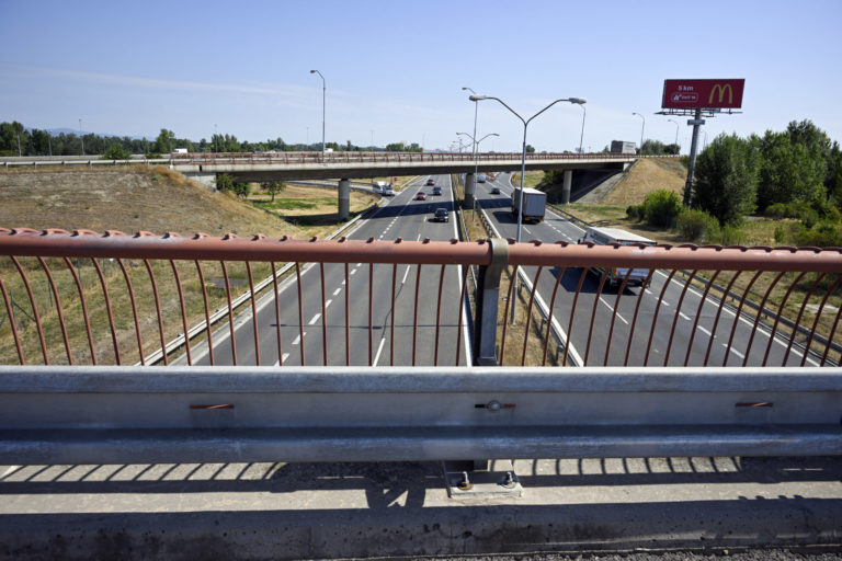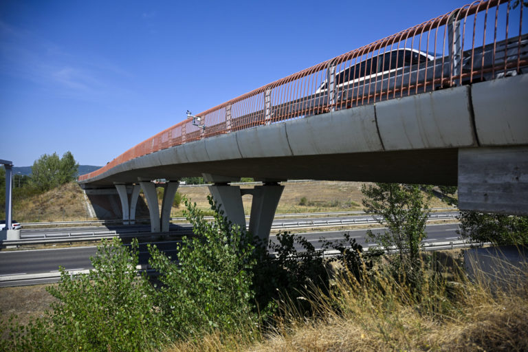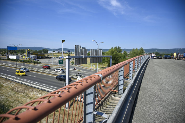 Nepoužívaný most nad D1 na Zlatých Pieskoch v Bratislave po tlačovom brífingu ministra dopravy Jozefa Ráža a generálneho riaditeľa Národnej diaľničnej spoločnosti (NDS) Filipa Macháčka na tému: Historicky najvyššia investícia NDS. Bratislava, 12. august 2024. Foto: SITA/Milan Illík.