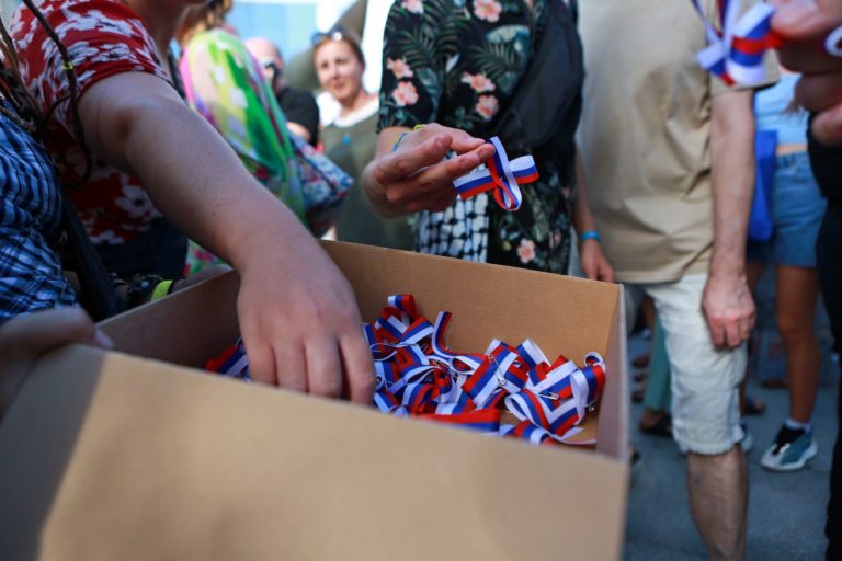 Atmosféra počas pochod od novej budovy SND. Bratislava, 12. august 2024. Foto: SITA/ Tomáš Susko